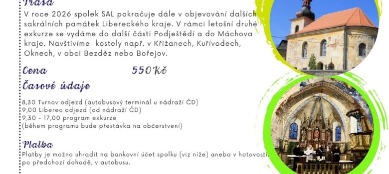 W sierpniu wydrukowano drugie wydanie ulotki „Zabytki Żydowskie w regionie libereckim”. Dzięki wsparciu finansowemu Unii Europejskiej z Europejskiego Funduszu Rozwoju Regionalnego w ramach programu Interreg Czechy-Polska 2021-2027 za pośrednictwem Euroregionu Nysa oraz wsparciu finansowemu LK, SML oraz miast Turnov i Česká Lípa, powstała również nowa, polska i niemiecka wersja ulotki. Wersje elektroniczne wszystkich wersji językowych można znaleźć tutaj: https://salliberec.cz/pruvodce-2/. Wersje drukowane są dostępne w stowarzyszeniu, a także w centrach informacji turystycznej (TIC) Liberec, Turnov i Česká Lípa, ….