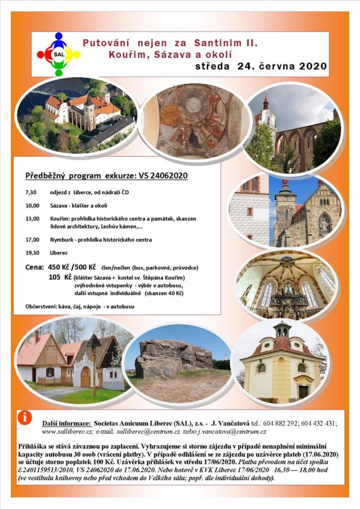 Exkurze „Nejen za Santinim II“ – Kouřim, Sázava středa 24. června 2020