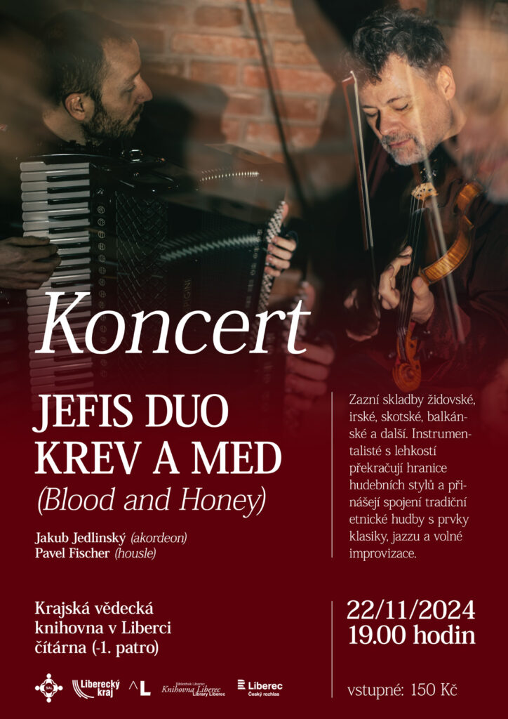 Koncert „Krev a med“. DUO JEFIS, KVKLi pátek 22. listopadu od 19,00 hod.